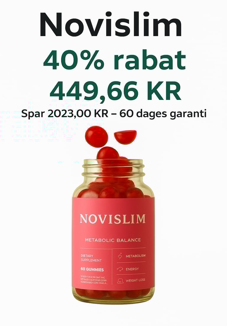 Novislim er den ultimative naturlige løsning til effektivt vægttab, forbedret stofskifte og øget energi, designet til at hjælpe dig med at nå dine sundheds- og vægtmål på en sikker og bæredygtig måde. Med Novislim får du et premium kosttilskud, der understøtter fedtforbrænding, kontrollerer appetitten og fremmer en sund livsstil, samtidig med at du får mere overskud i hverdagen. Bestil Novislim i dag til den eksklusive pris på kun 449,66 KR og nyd godt af vores særlige tilbud med op til 40% rabat direkte via den officielle hjemmeside, hvilket giver dig mulighed for at spare stort uden at gå på kompromis med kvaliteten. Hver pakke Novislim er omhyggeligt fremstillet under strenge kvalitetsstandarder, hvilket sikrer produktets effektivitet og pålidelighed. Som ekstra tryghed tilbyder Novislim en 60-dages pengene-tilbage-garanti, så du kan prøve produktet uden risiko og opleve de synlige resultater selv. Tilbuddet inkluderer også gratis levering, hvilket gør det nemt og bekvemt at starte din rejse mod en sundere og lettere krop uden skjulte omkostninger. Novislim er ideel for alle, der ønsker at reducere vægt, forbedre energiniveauet, opnå bedre velvære og samtidig bevare en naturlig balance i hverdagen. Med et nemt og fleksibelt program samt naturlige ingredienser integreres vægttab problemfrit i din daglige rutine. Tøv ikke – bestil Novislim nu, få levering direkte til døren med garanti og stort rabat, og tag det første skridt mod en sundere, mere selvsikker og energifyldt version af dig selv. Novislim er det perfekte valg for dig, der vil have synlige resultater, øget velvære og en naturlig, pålidelig løsning til vægttab og sundhed.